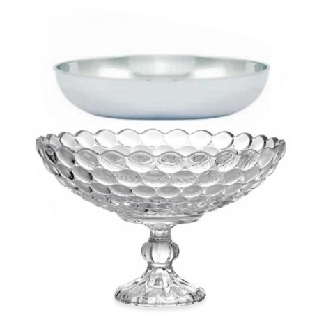 Add a ring of the floral clay to the bottom of the compote dish and press the silver bowl down firmly into the glass bottom so it adheres firmly to the glass.