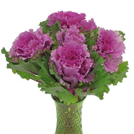 This variety goes off season in the middle of summer and isn't available from July through August. Other color varieties are available as well. Delicate veining in lavender make this cream kale bouquet a delightful blending of colors.