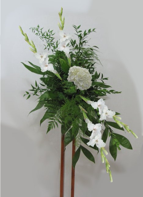 Balance these flowers with two similar insertions of glads at the top.