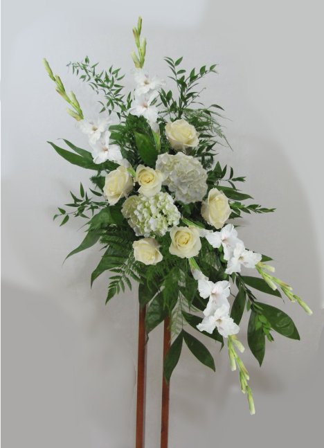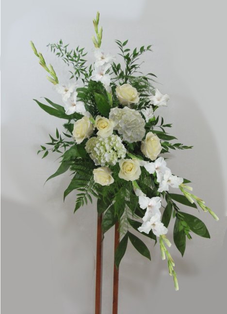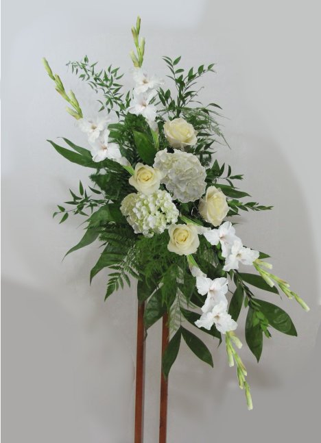 Many times large church flowers are created with a matching "mirror" image. This means that the flowers are similar, but designed in an opposite angles such as the ones below.