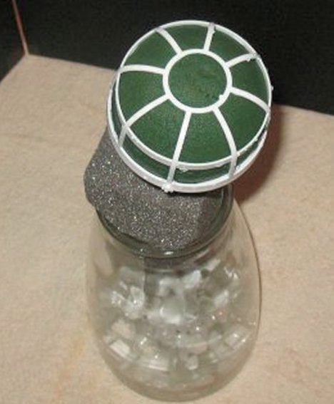 Once the foam head is heavy with water, secure in a narrow necked vase weighted with rock or marbles. Wet foam and flowers are a heavy combination and you don't want your flowers toppling forward as you are designing.