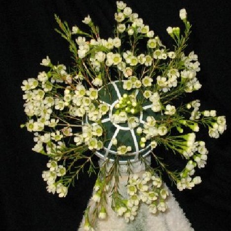 Fill in any more holes with wax flower until you have a tightly massed bouquet in a round shape!