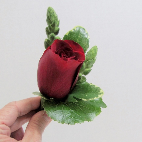 When you make this boutonniere, always keep in mind that the rose is the focal flower. All the other elements of the design is to compliment the main flower - not overwhelm it.