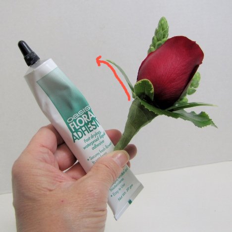 I could hold it closer to the rose head with a dot of floral adhesive.