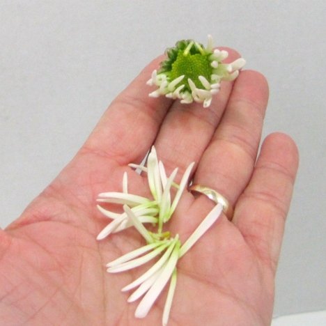 If you want to add in some interesting texture, florists sometimes pull the petals off flowers and use only the colored center for emphasis.