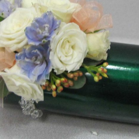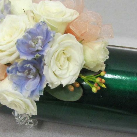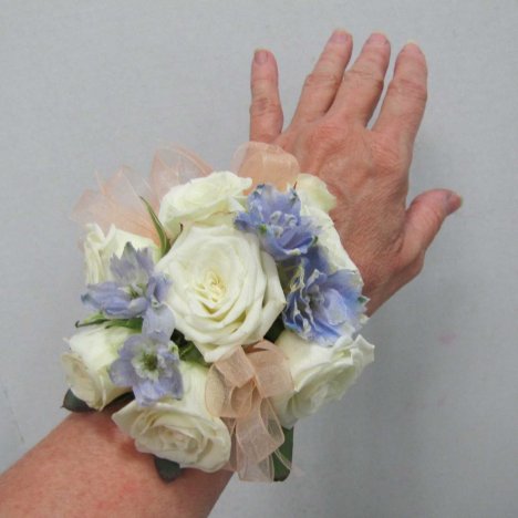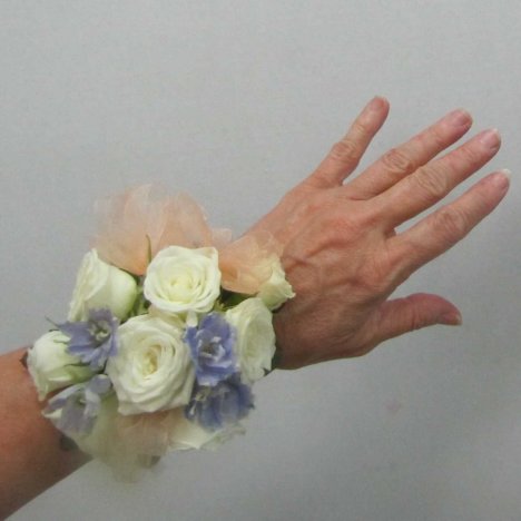 I like the shape and dimension of the wristlet. I sometimes try on the flowers just to be sure I'm shaping the design correctly and that it doesn't "flop around" on the wrist.
