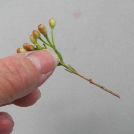 I snip off the small laterals and strip off the bottom leaves or branches before gluing into place.
