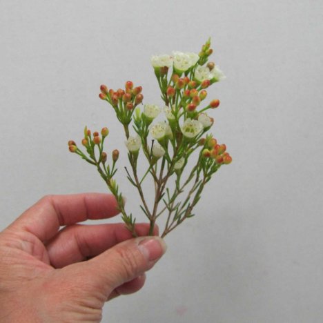I am adding another small accent flower. Wax flower is a cool filler, combining tight bead like heads with tiny pink, white or lavender flowers.