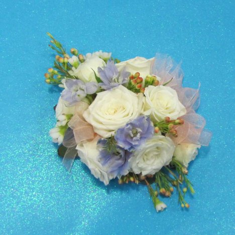 Once you are finishing adding in your filler flower, slip the final design on your own wrist. Give a little shake to be sure the flowers are all glued securely and the flowers are well balanced.