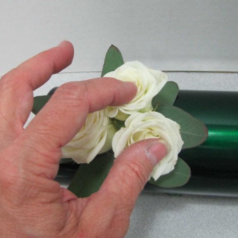Some designers apply all their glue and allow the flowers to dry stem up then attach them to the design. I prefer to take my time and glue the flowers one at a time.