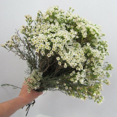 Wax flower is a grassy filler flower with tiny blooms that come in pinks, whites, and purple. You can also tint the white with Design Master's Just for Flower that can turn it into assorted colors without harming the flowers.