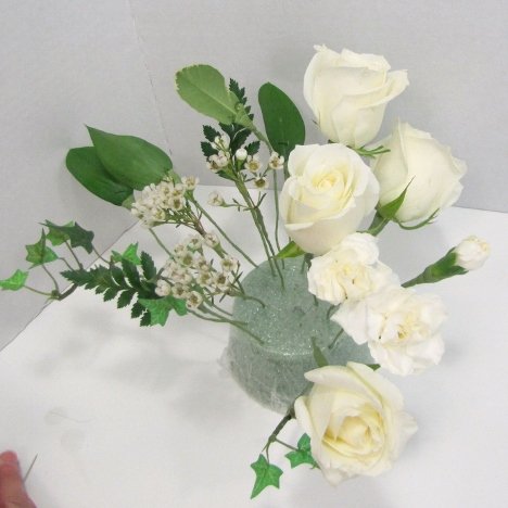 It is wise to mist your cut flowers with a flower sealant such as Finishing Touch to keep them fresh. If you are doing large quantities of corsages and boutonnieres, place them in the refrigerator if the room is warm as you are working on the next flower or greens.