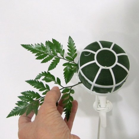 As I begin to add more fern fronds, the angle of the insertion begins to angle upwards. You don't want a flat looking design, so the stems should mimic the look of an actual fern plant.