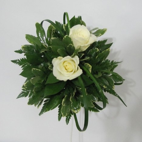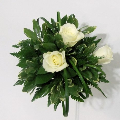 As you place your flowers into the design, the center rose should face straight out, the next ring of roses should begin tipping outward and the outer ring of flowers should be at a complete 90 degree angle ("L" ) to the center flower.