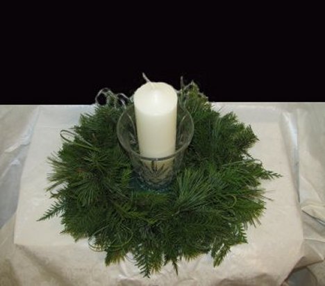 You can make a Christmas centerpiece fuller with the addition of pine. Again, strip the needles off the bottom so you can have a clean insertion into the florist foam.