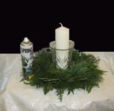 Before adding the fresh flowers, I spray with Leafshine, which gives the greens a glossy finish.