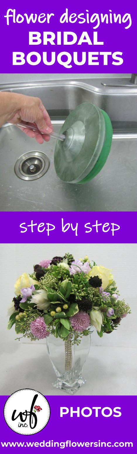 You can make your own bouquets by following my many easy tutorials. I show how to make hand ties, flowing cascades, round, crescent and pomanders. Do not dwell as much on the color of bouquets for ideas, but choose first the style. Most bouquets can be made over in different color or by substituting different flowers.