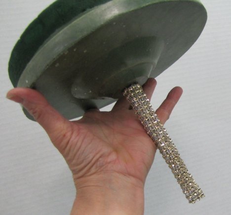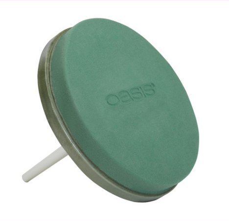 This unique bouquet holder is made with Oasis Maxlife florist foam. It's very easy to design with, especially for larger bouquets. The surface is approximately 7 1/2" in diameter.
