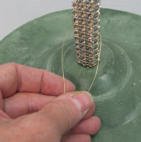 I used gold bullion wire to be sure the wrap stays securely in place.