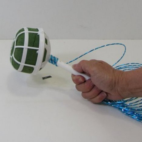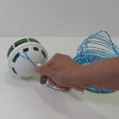 You have to make sure the wire is secured tightly or the winding may come loose with handling the bouquet. I hook the end of the diamond wire into the actual cage of the bouquet holder.