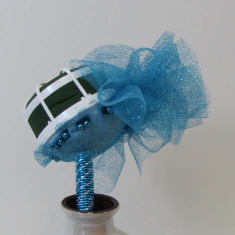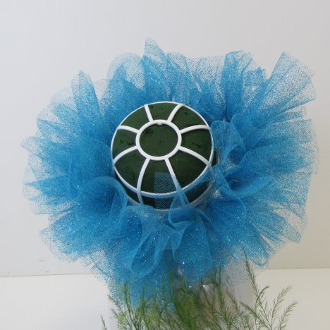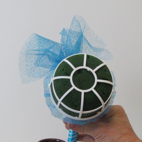 The puff should be fluffed out and create a circle pattern around the perimeter of the Oasis foam head.