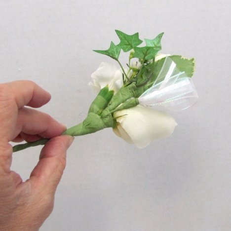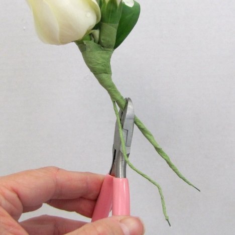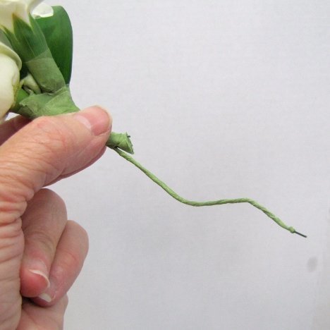 Always be sure the cut wire edges are covered securely in corsage tape so they don't snag clothing or scratch fingers later.