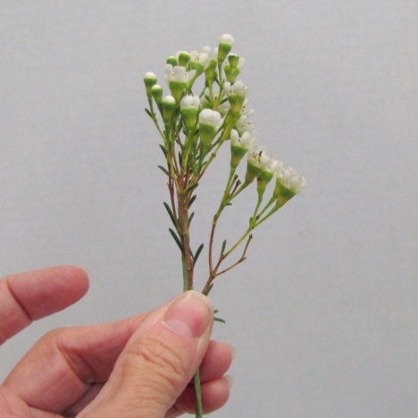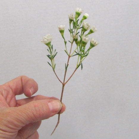 If you wish, you can simply cut off a clump of wax flower and tape some leaves to it. But I like to pay attention to detail - so I take the time to wire individual sprigs.