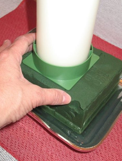 If your pillar candle is very tall, you may want to have extra security by taping the holder into place with waterproof florist tape.