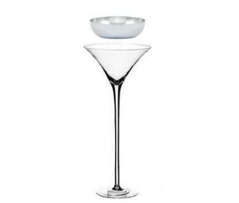 Place your appropriate size silver (or gold) dish down into the martini glass.