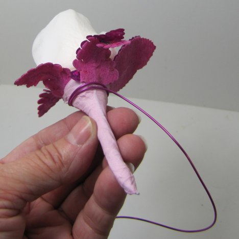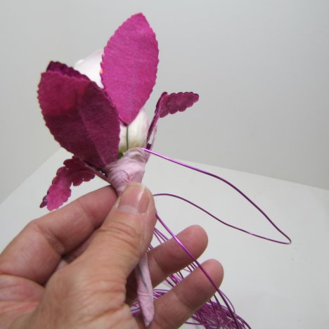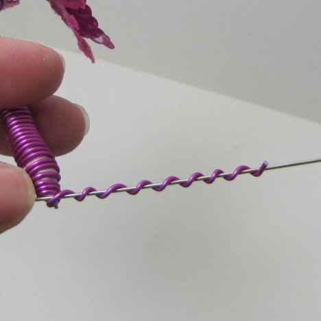 The beginning wind is the most difficult part. Take care to push the wire upward so it touches the first wrap under the leaves.