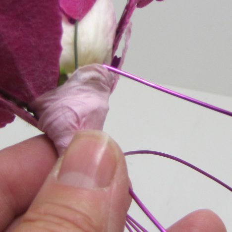 Always insert the wire end into the head of the rose. Don't allow any cut edges or points that can snag material or fingers.