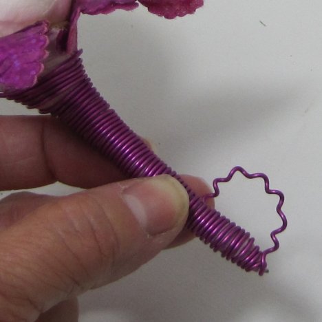 As you work your way down the stem, it becomes easier. The wire is very malleable and is easy to work with using your fingers only.