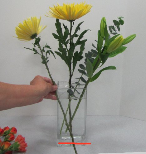 You can see by the red line the amount I will remove with a sharp cut of my florist knife.