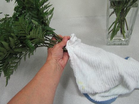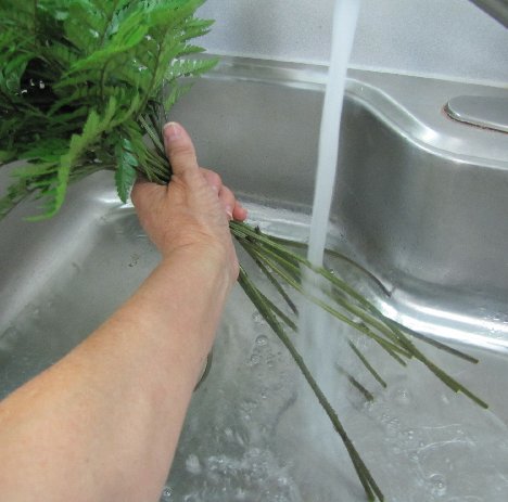 Before inserting them into your vase (which you've worked so hard to keep clean and contaminate free) - give your greening stems a good rinse to wash away the dirt before inserting them into your arrangement.