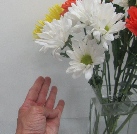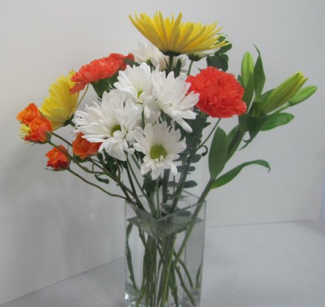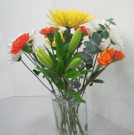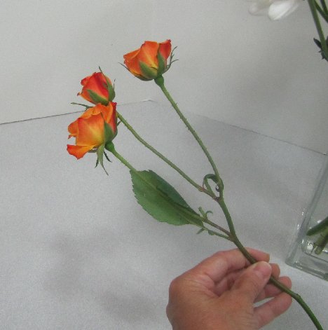 I inserted it into the right side, balancing out the shorter stem with the other orange flowers in the arrangement.