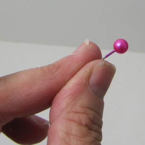 To prevent this, I insert the pin into a stiff piece of styrofoam, leaving only the length of shank you want on the pin.