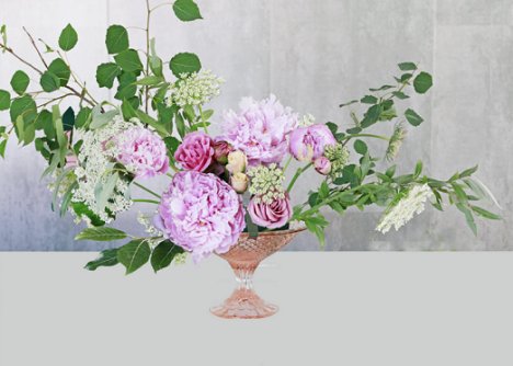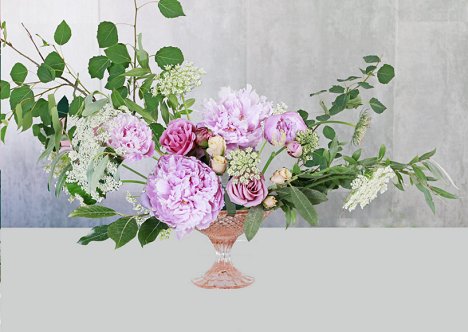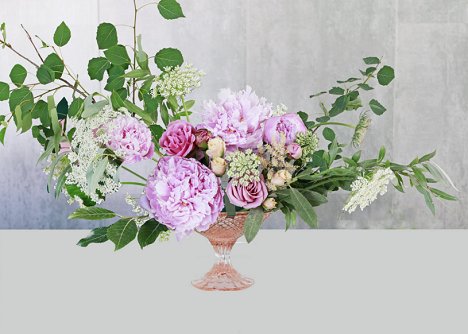 Let's fill out this peony centerpiece with another shade of pink to soften the brightness of the peonies. These spray roses look rather peachy, and will give some contrast to the other pinks in the design.