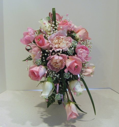 The design is now finished. Don't feel like you have to use the same colors . . . or even the same flowers. A cascade design is basically the same steps using different flowers.