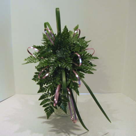 I created a loop on a Cowee pick and inserted up into the bottom of the bouquet, right above the long lily grass.