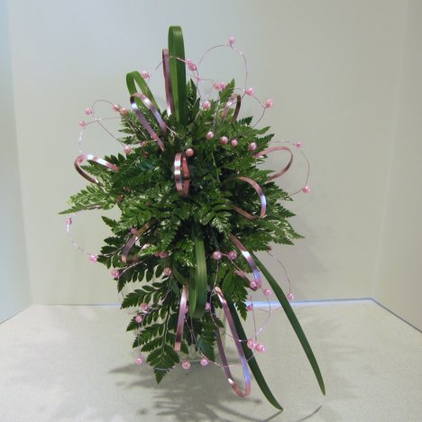 The greened bouquet already takes on a life, especially when you add longer blades of lily grass down on the lower right to create a graceful line that draws the eye.
