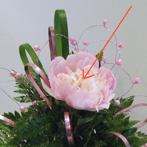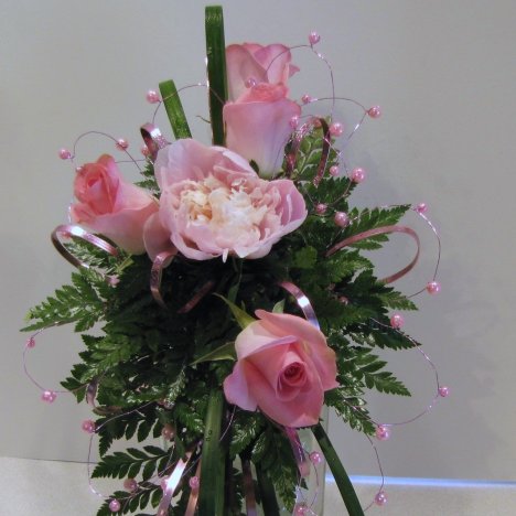 Now I inserted another one in the very top of the bouquet and a rose facing downwards, under the left of the first peony.