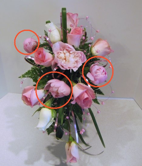 Fill in as you go. It is wise to create "flower formulas" for each bouquet and centerpiece when you order flowers. You then refer to them when you create your bouquets. This assures you that you'll have plenty of flowers to finish all designs without running out.