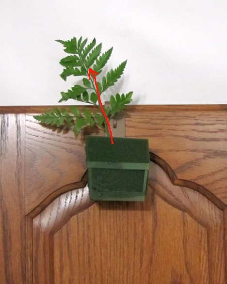 The first step in creating a fresh flower pew decoration is to green in the foam hanger clip. I like using leather leaf fern. (They average around 20 stems in a bunch) and a single bunch can usually do up ten pew decorations.
