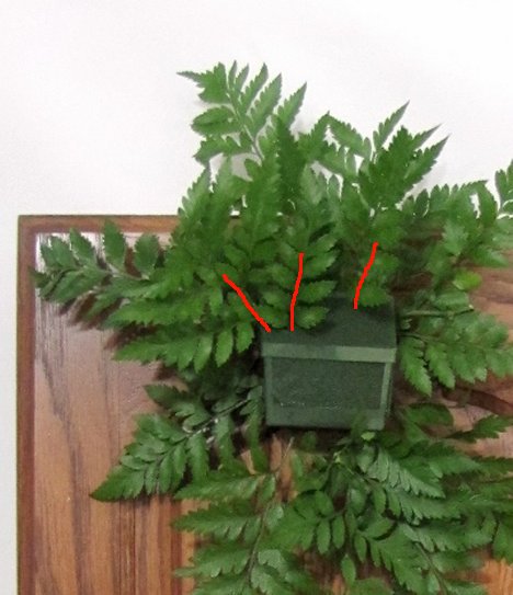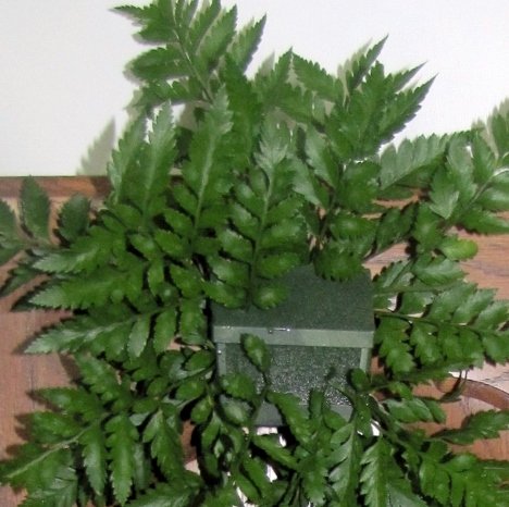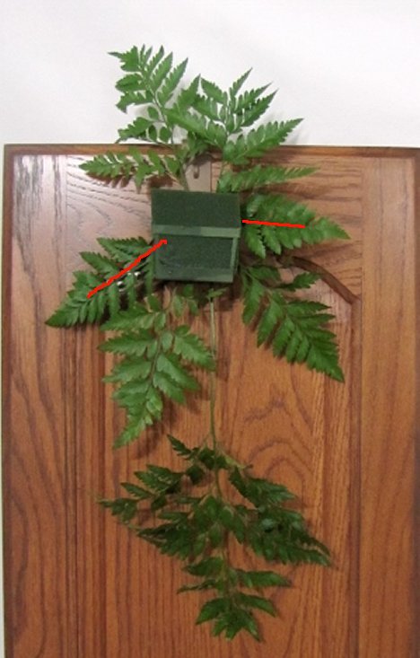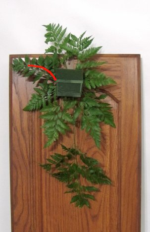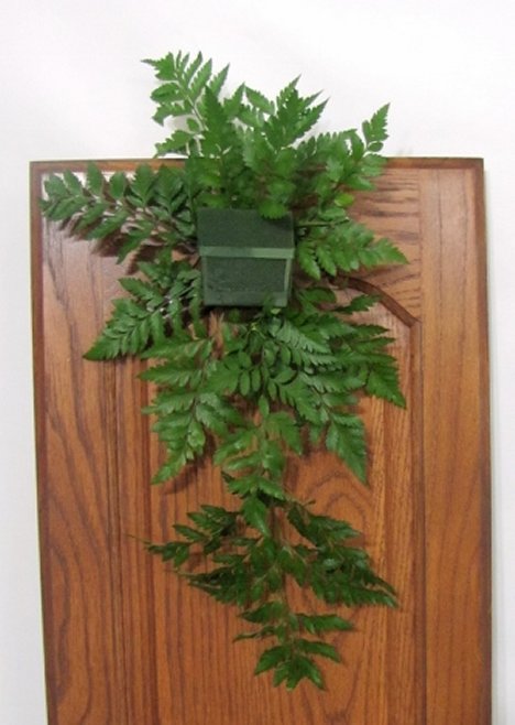 I continue to cut shorter fronds and quickly fill in the foam, creating a base of greenery.