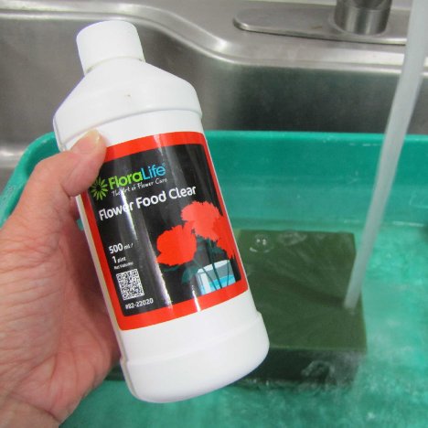 You always start with "float soaking" your foam. (Allowing it to sink slowly into the water rather than forcing it below the surface.) When using fresh flowers, always add a flower food to the water. This simple step extends the life of wedding flowers. This is always important, even more so for DIY flowers which are not resting in a florist's cooler while waiting for the wedding day.