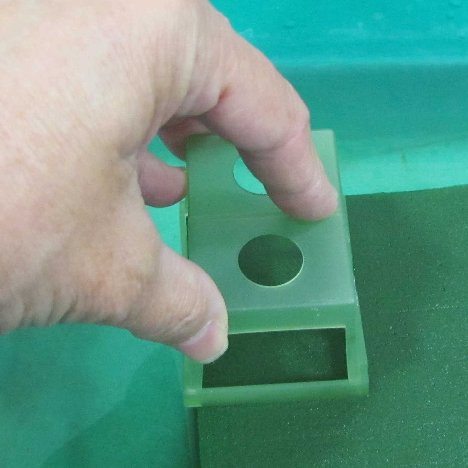 This will give me guidelines on how big to cut the foam. (If doing a large quantity, you can press and cut all the blocks needed out at one time.)