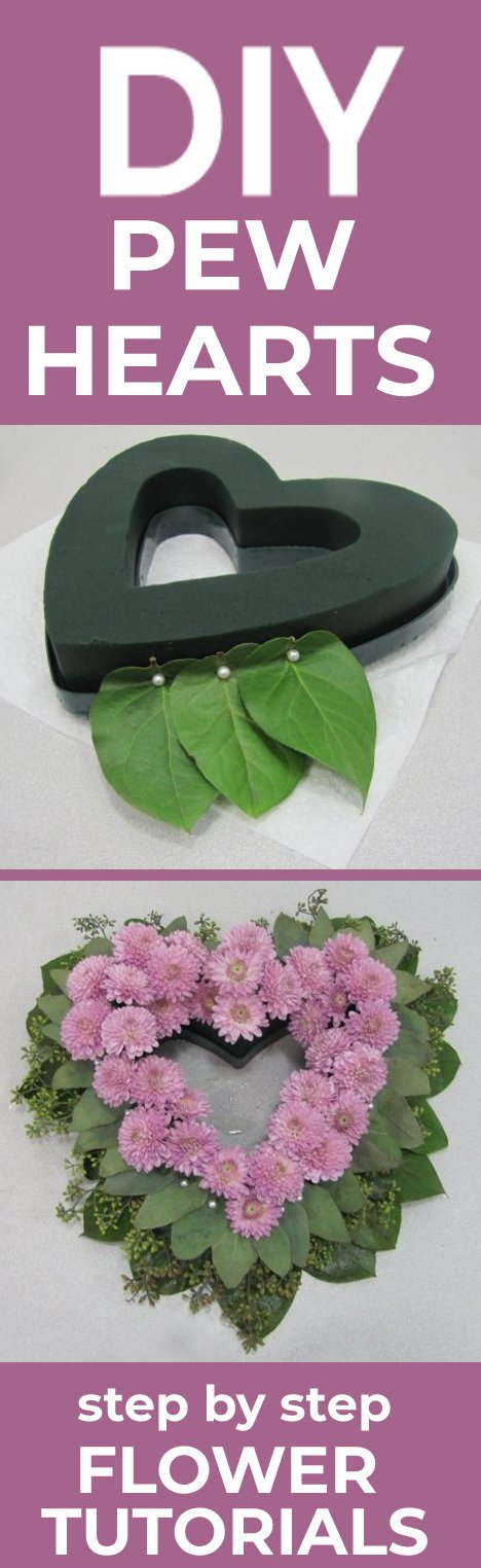 Pew ends are a great to add elegance to your wedding decorations. I have many tutorials for different styles of bows, flower bouquets and more. Check out these lovely heart shaped florals to hang from your guest seating.