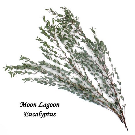 Moon Lagoon eucalyptus features tiny leaves, with long straight laterals on a slender stem.