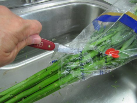 Use the same knife to carefully slit up the cellophane sleeve that is protecting your flowers.