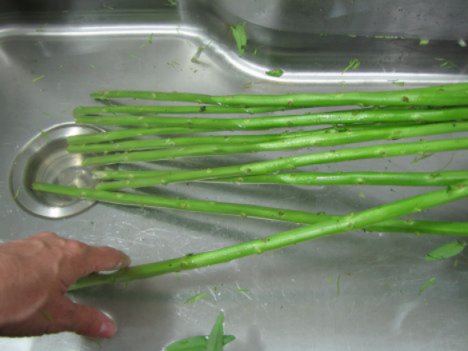 Be sure all the stems are below the water line in the sink or tub before cutting the stems.